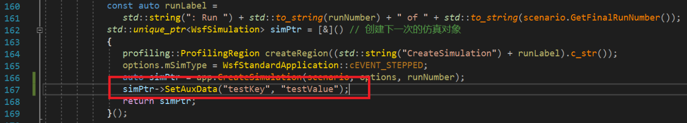 1)在创建WsfSimulation对象的地方,添加自定义属性数据,这里在mission项目中创建Simulation对象后,设置了测试的数据: