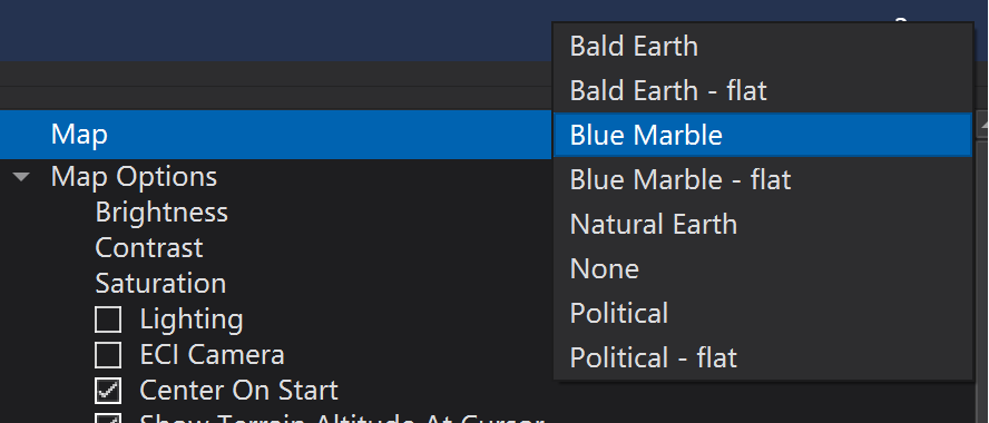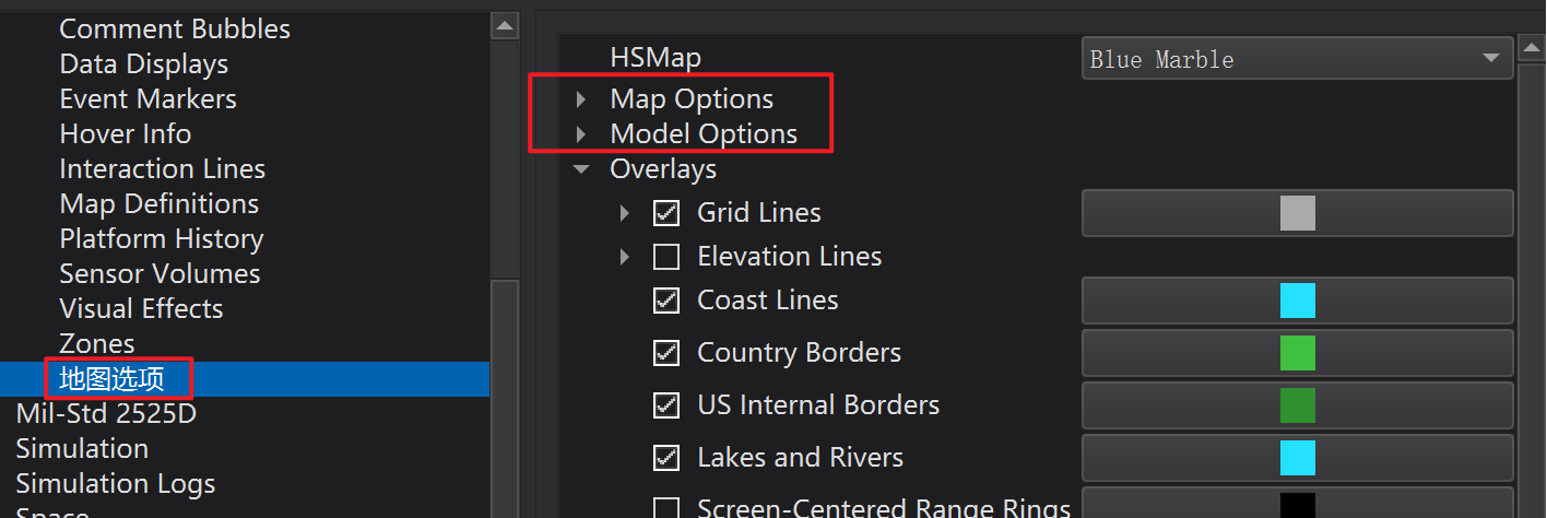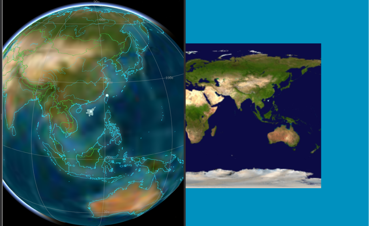 上面是两个三维球的显示,但我们这里的目的是显示二维地图,因此需要先将三维球切换为二维。在之前的《影像及高程等数据加载》文章中,讲过afsim会根据Preference里面配置的地图名称添加后缀" - flat"加载同名xxx_flat.earth文件来将osgearth的三维球展开为二维。我也是沿用此机制,根据三维球选择的地图名称,在我们新建的Map2DockWidget中将SetPreferences修改为三维同名带" - flat"的地图名称的代码: