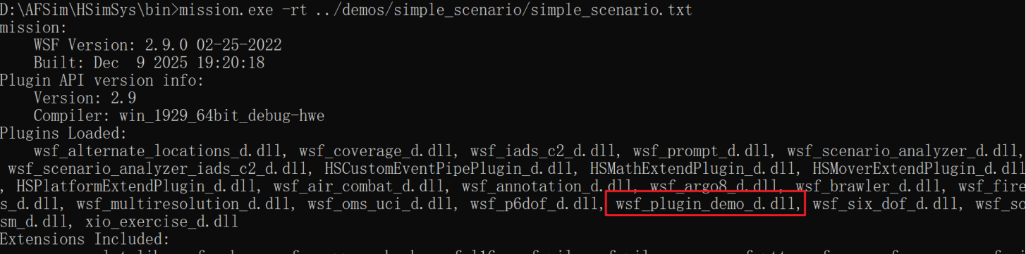 上述即完成了插件的开发,完成了获取仿真过程的当前时间和平台信息并打印到控制台中。当然这个插件也可以被仿真引擎加载,与mission.exe加载运行的效果是一样的。