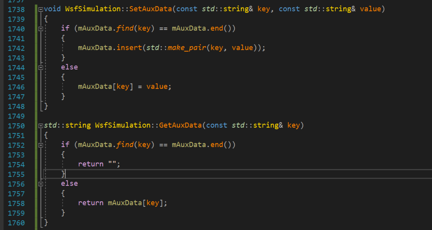2)打开源文件WsfSimulation.cpp,在1738行添加以下代码(即头文件中定义的两个函数的实现):