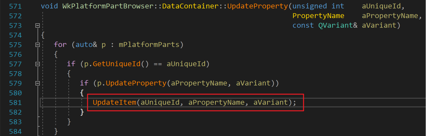 上面的TurnOn动作是在WsfPlatformPartEvent事件执行时完成的,而这个事件是在界面勾选On复选框时经过Warlock自行封装的一套Command框架后,会触发到下图所示的函数调用中: