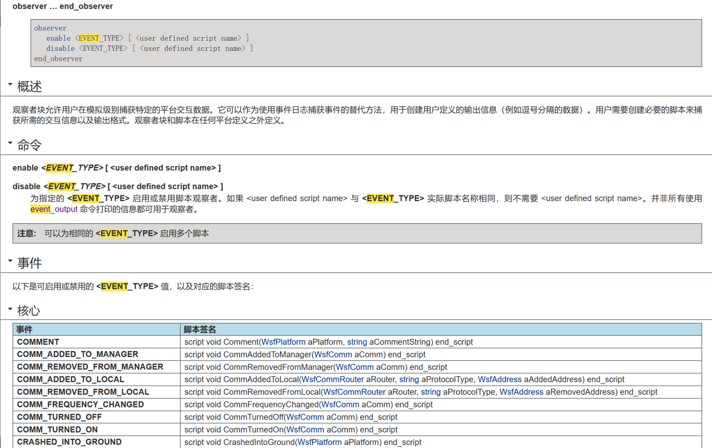 上面是预定义事件的响应处理,其实内置的事件已经能够满足绝大部分需求了,而afsim也是支持扩展事件的,下面就来怎么扩展事件并让脚本进行响应。