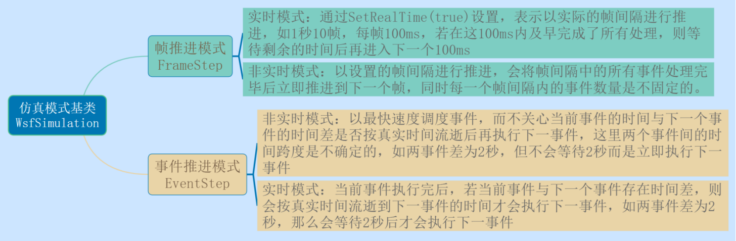 afsim提供了两种仿真模式:FrameStep和EventStep,确切来讲是四种模式,因为每种模式又分为realtime和non-realtime模式,每种模式的简单区分如下: