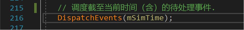 从上面能够看到,不管是帧推进模式还是事件推进模式,最终都会落到事件的分发处理上面(即afsim是事件驱动的仿真)就如源码中的DispatchEvents(aSimTime)调用一样:
